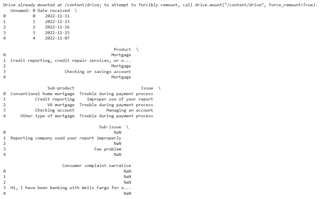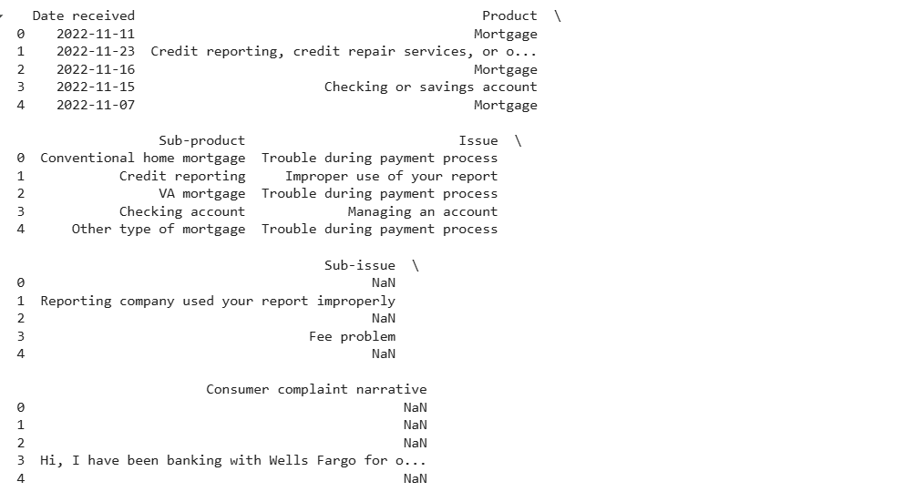 Let’s begin the consumer complaint classification task by importing the required Python libraries and loading the dataset: