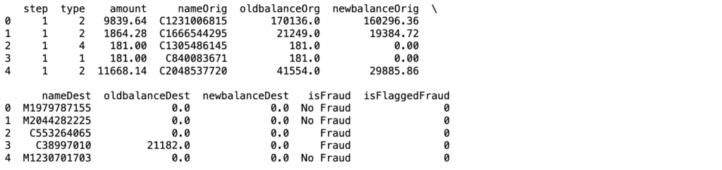 Next, we’ll convert the categorical features into numerical form. I’ll also relabel the values in the isFraud column as “No Fraud” and “Fraud” for clearer interpretation of the model’s output: