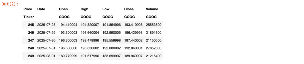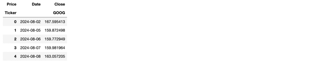 Let’s begin the Time Series Forecasting task using the ARIMA model. To start, I’ll fetch Google’s stock price data using the Yahoo Finance API. First, you need to install yfinance API by using the pip command in your terminal or command prompt as mentioned below:
