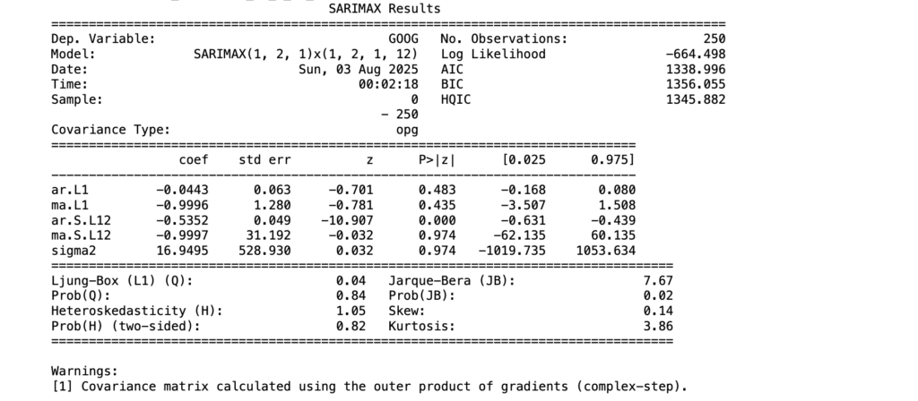 d (integrated part): This tells the model how many times to difference the data to make it stable (or stationary). Stationary means the data doesn’t show trends or seasonal patterns, it stays around the same level over time. Example: If the data is already stable, d = 0. If it has trends or seasonality, d might be 1.