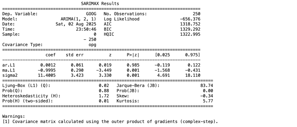 The ARIMA model has three main parameters, written as ARIMA(p, d, q). Let’s understand what each one means: