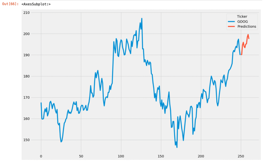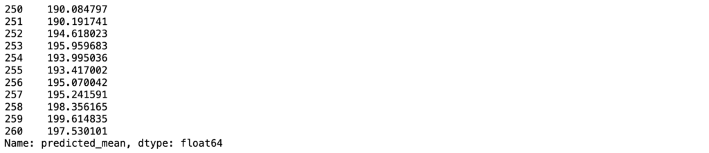 Now let’s predict the stock prices using the SARIMA model for the next 10 days: